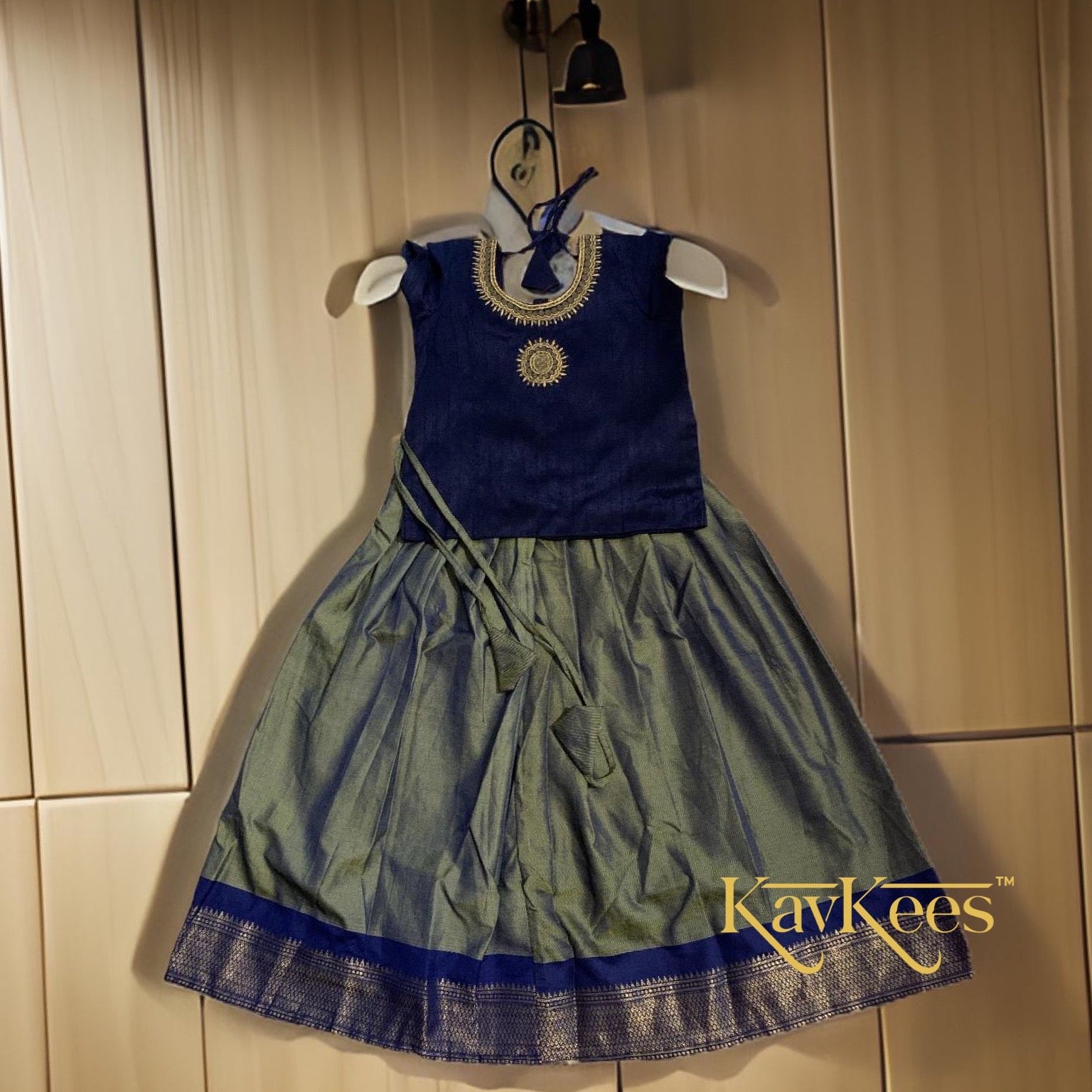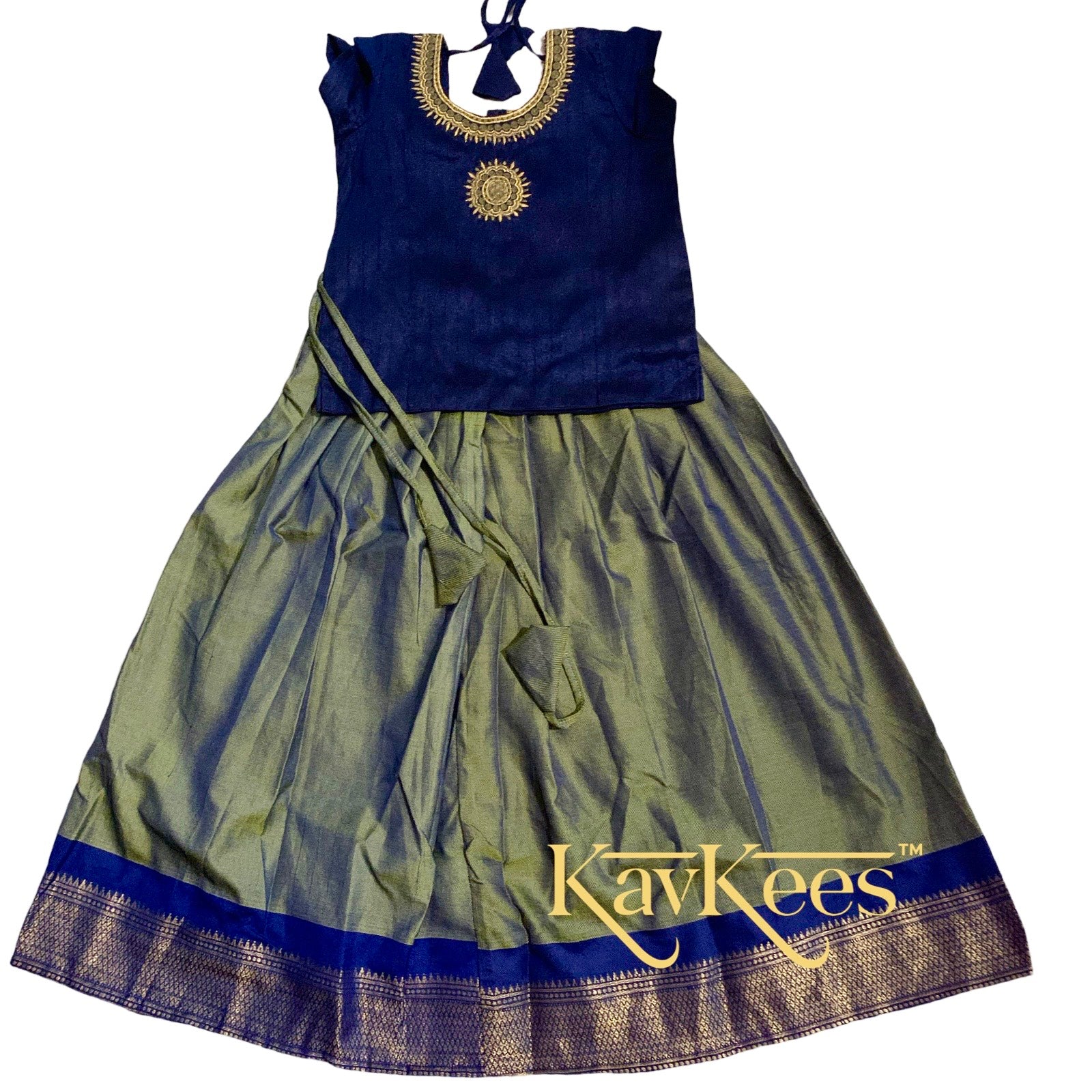 This beautiful set comes from the Mahathi Collection which uses Paithani style fabrics for the skirts.
